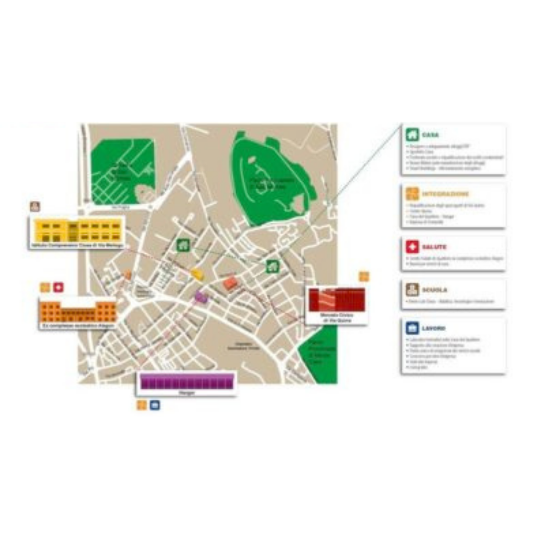 Gli interventi consistono nel miglioramento della qualità degli spazi di vita nel quartiere; nel recupero funzionale e riuso dell’Hangar; nel miglioramento dell’accesso ai servizi socio sanitari e nel recupero delle strutture Ex Scuola Alagon sita in via Abruzzi; nella riqualificazione dell’Istituto Comprensivo Ciusa; in attività di Cultura d’impresa e inclusione attiva.